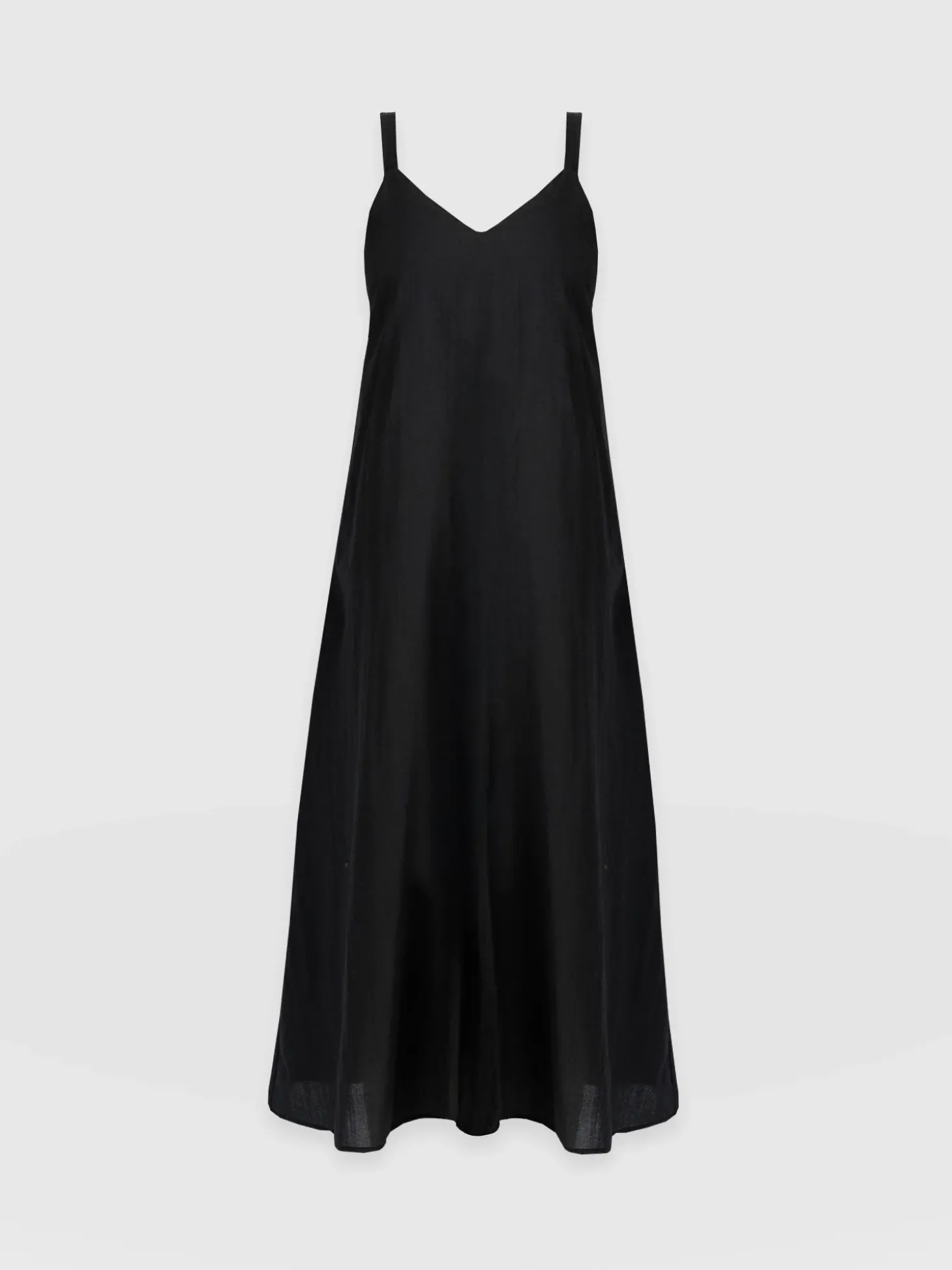 A lightweight dress perfect for when the sun starts to shine, the Candice Dress in black is a beautifully elegant design handmade from breezy cotton voile. It’s shaped to a plunging V-neckline with sleeveless straps and a full skirt that creates an A-line silhouette. Style yours with slides to hail that warmer weather.