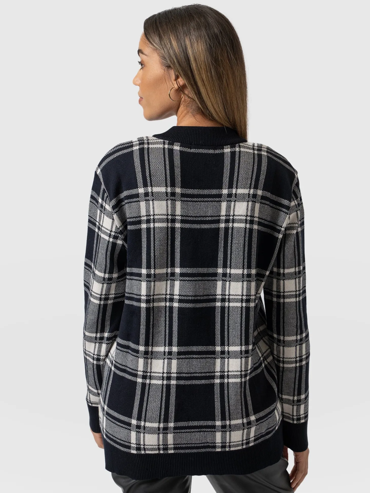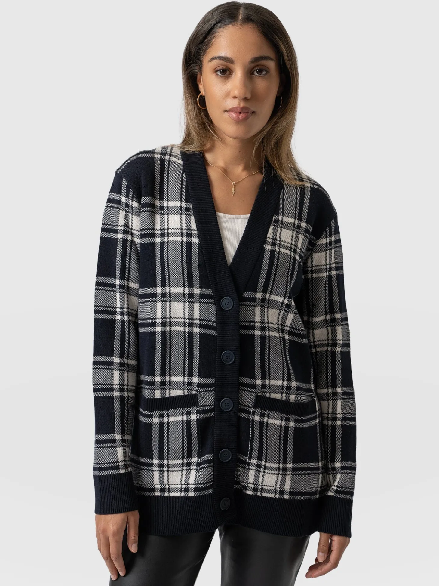 College Cardigan – Navy/ Cream Check