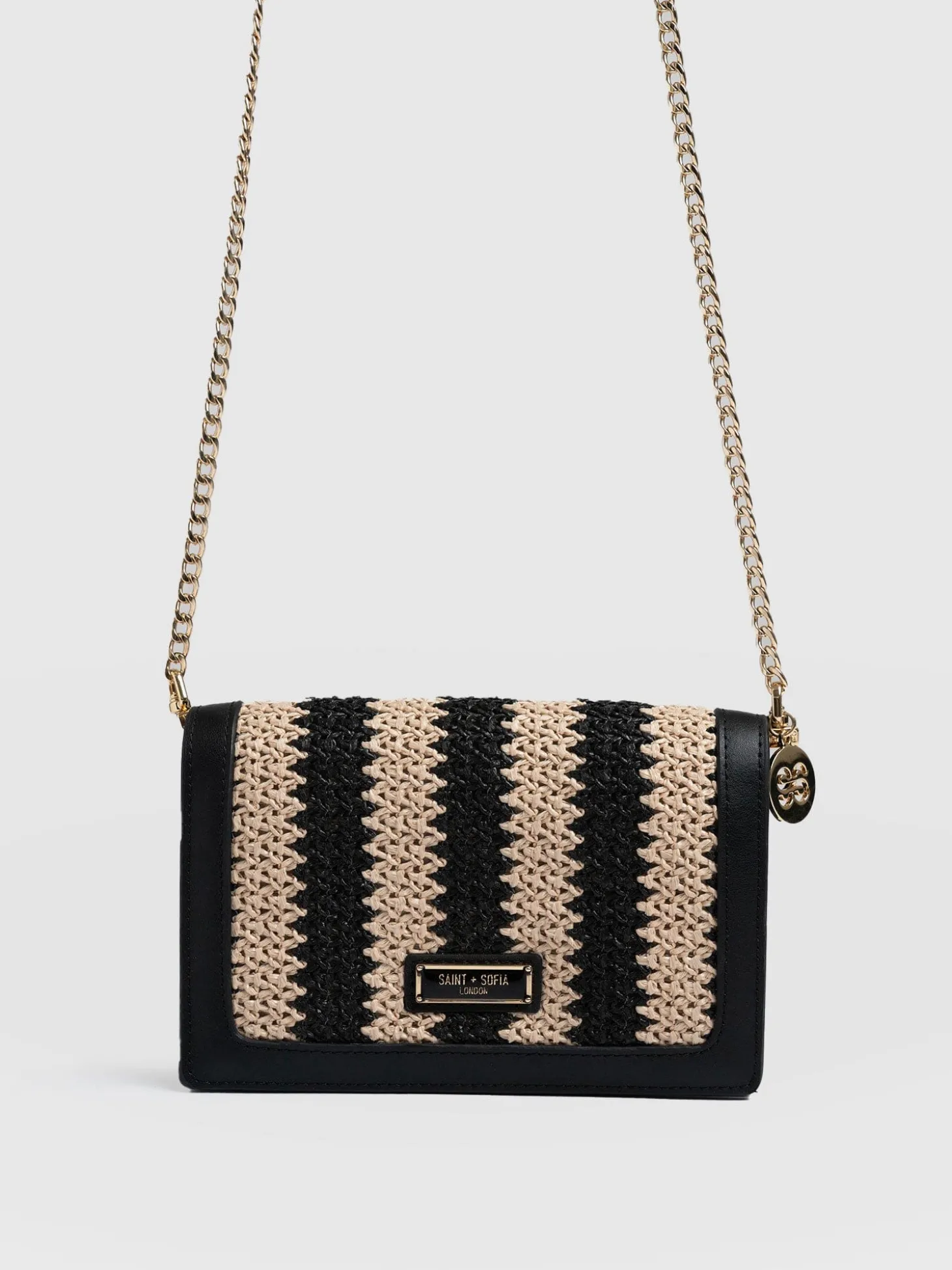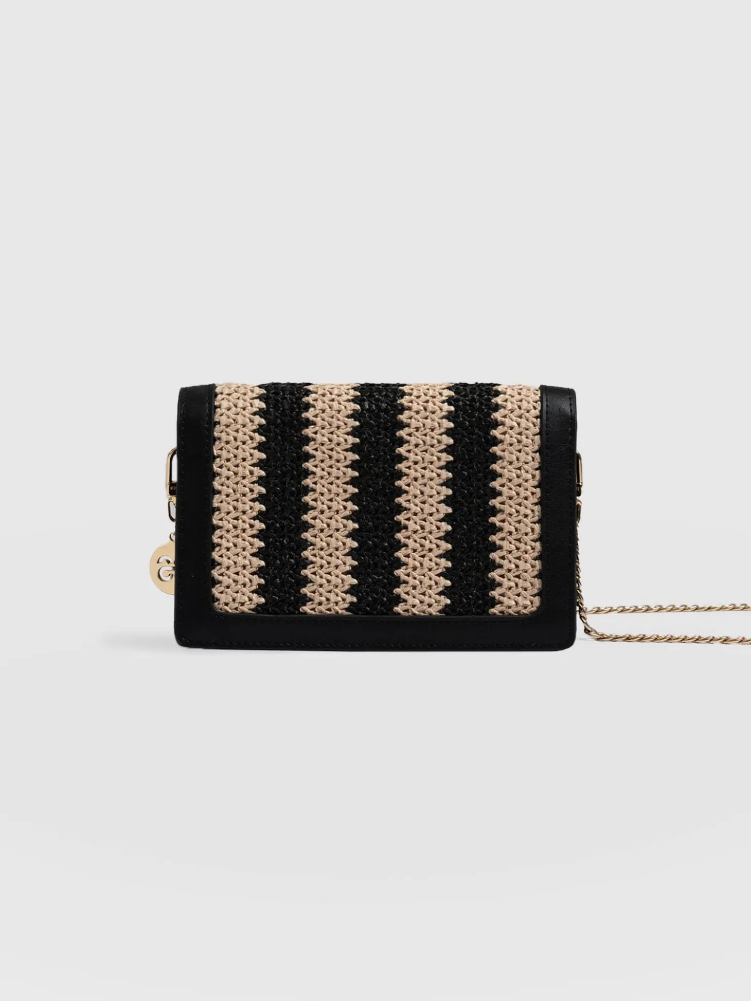 Primrose Wallet on Chain – Beige/Black Raffia