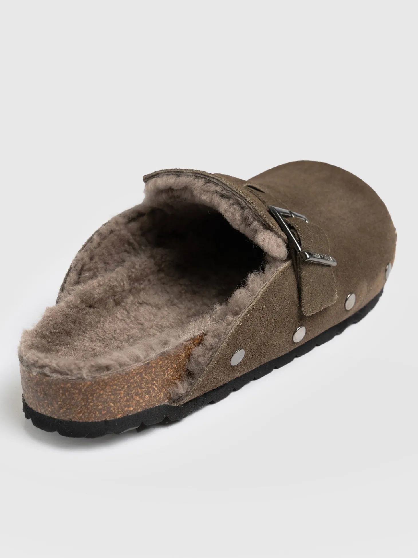 Studded Clogs – Khaki Shearling