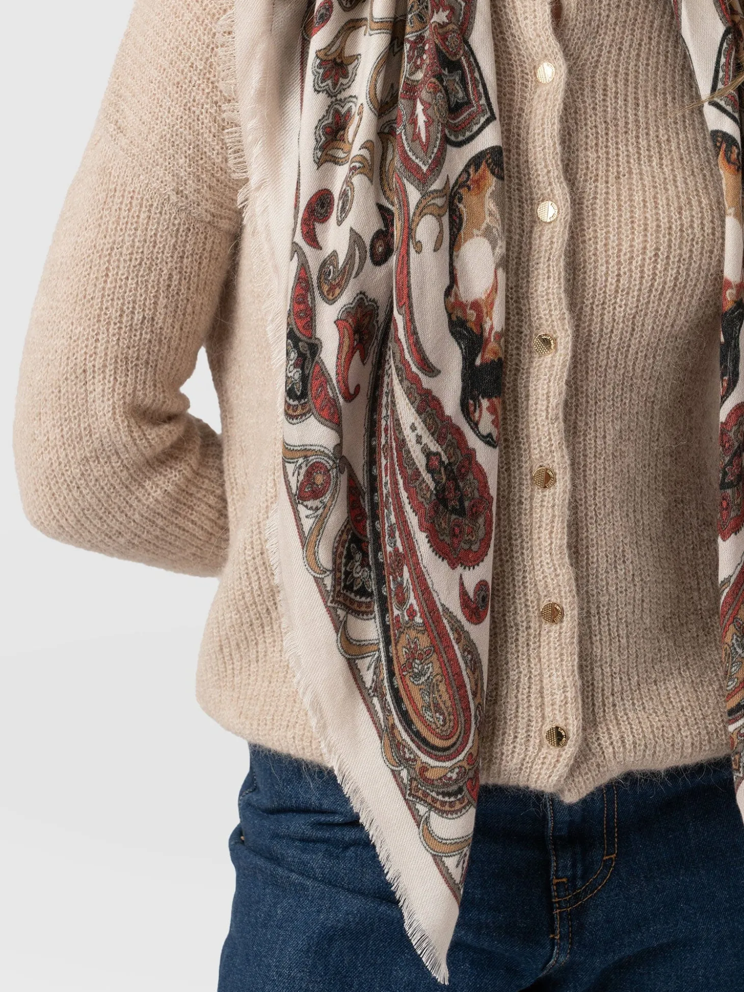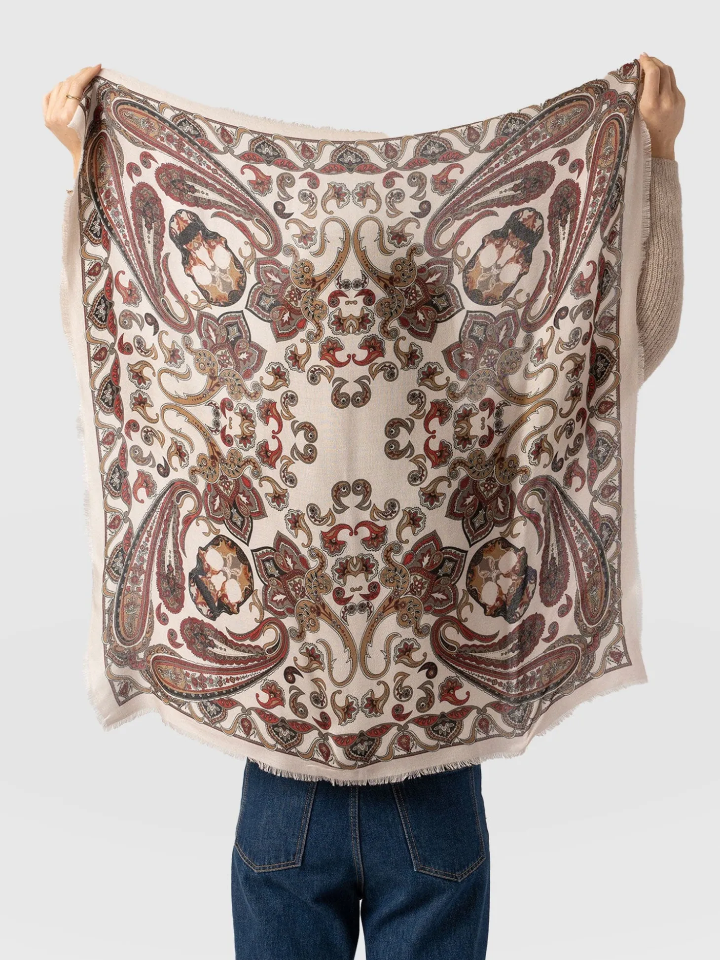 Wren Paisley Scarf – Cream/Burgundy