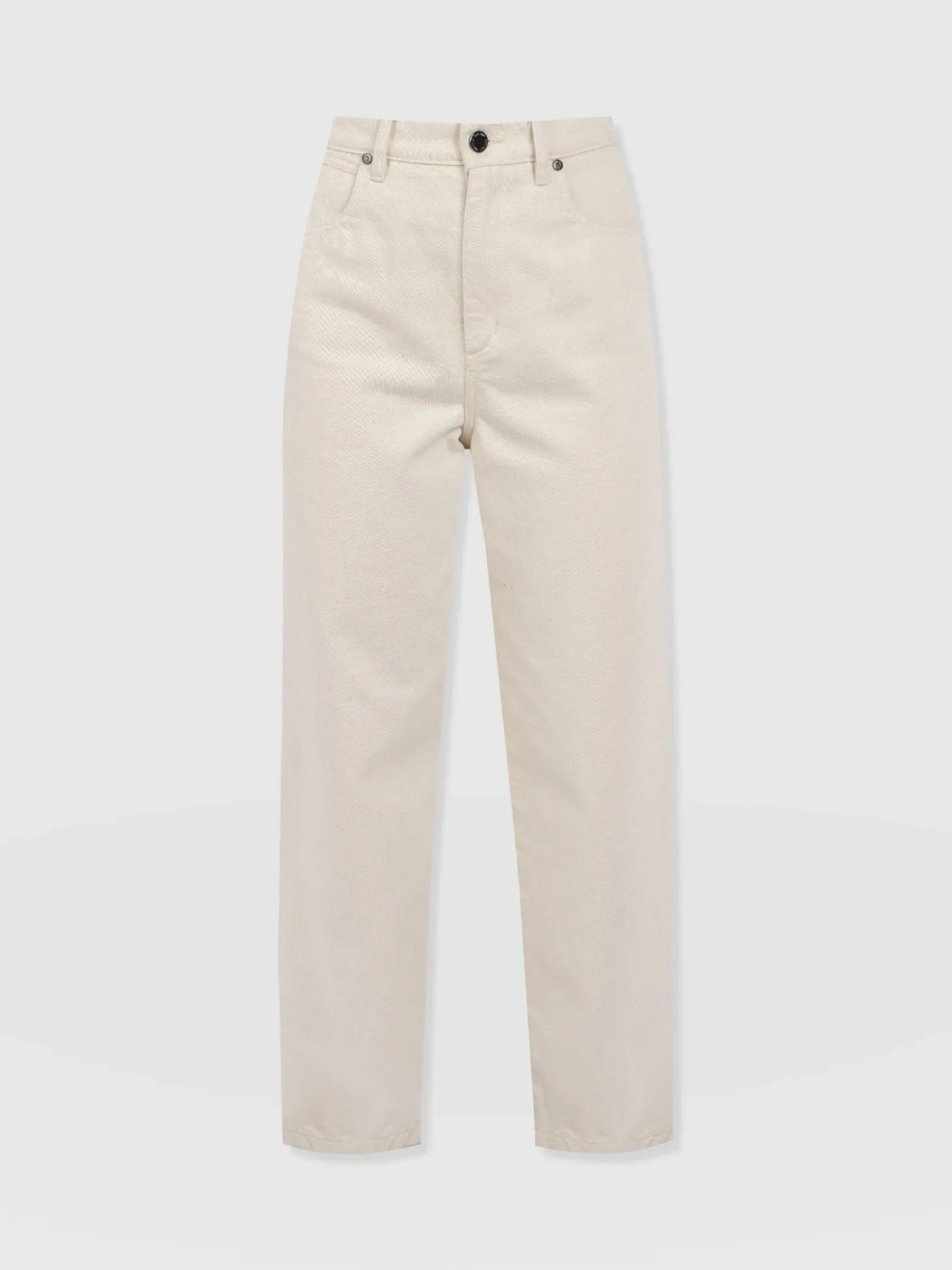 A pair of barrel-shaped jeans with a cropped finish. The Barrel Leg Jean in Cream is the perfect design for creating contemporary looks. This pair is designed in London and handmade in Europe using pure denim, then shaped to a rounded wide-leg design that cinches at the ankle. Wear yours with your favourite tee and either sandals or trainers – the choice is yours.