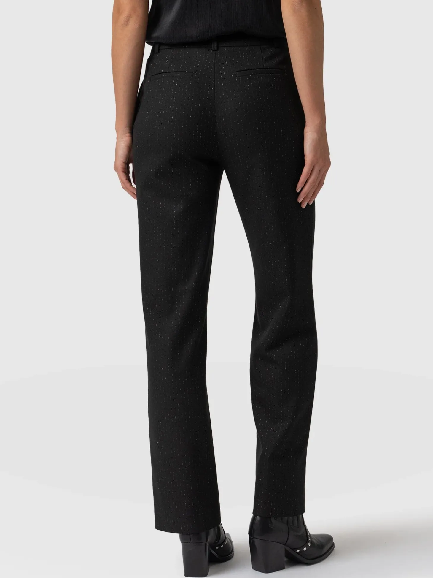 Elevate your tailoring with this our Chester Straight Leg Pant in Black Lurex Pinstripe. A beautiful example in power dressing with a feminine touch, this perfect tailored straight leg pant will be in your wardrobe for years to come. Pair with the matching Cambridge Blazer for an all around polished look that takes you effortlessly from desk to dinner.
