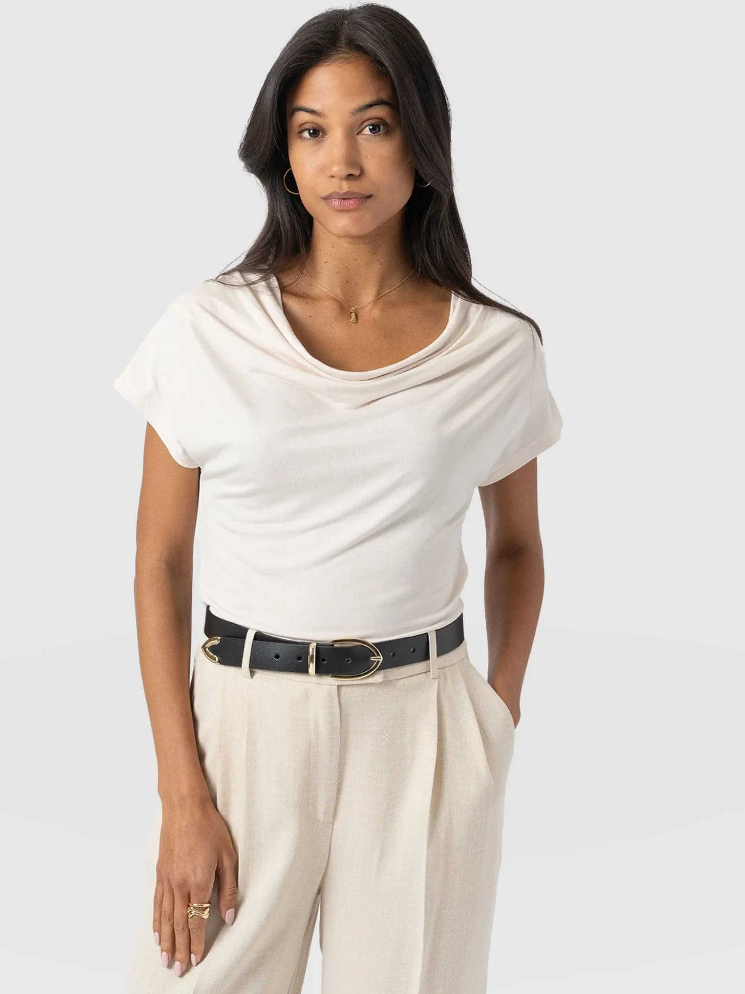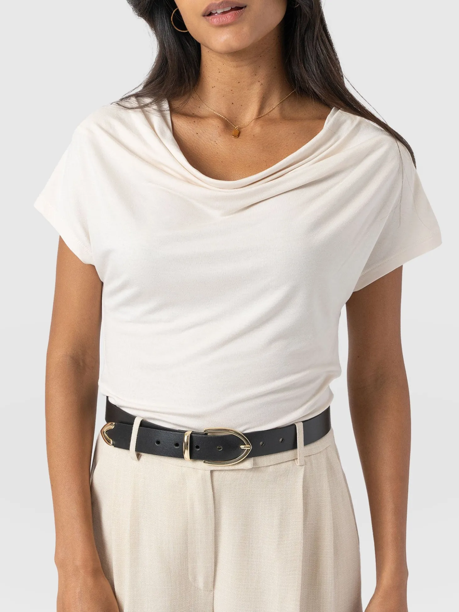 Cowl Neck Tee – Cream