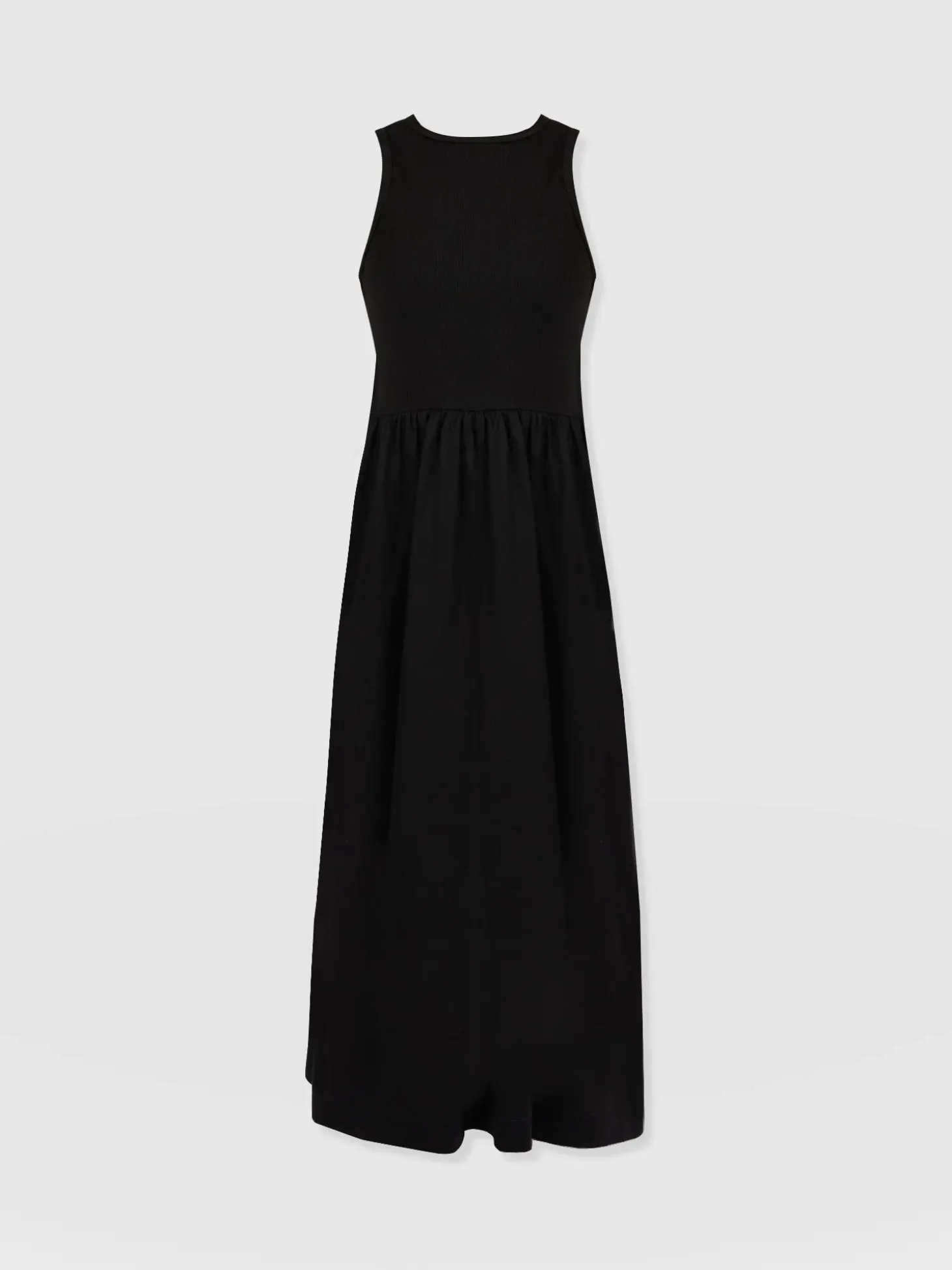 Topped by a crew neckline and ribbed bodice, the Ivy Full Skirt Sleeveless Dress is the perfect midi to add to your capsule wardrobe. It cinches at the waist to create a softly sculpted figure and features a pleated midi skirt that’s perfect for wearing to garden parties and evening dinners. Plus, with hidden pockets at the side, it provides room to store your essentials and allows you to roam hands-free. Wear yours with the Maddox Slides, a leather jacket, and some chunky jewelry to create a look with attitude.