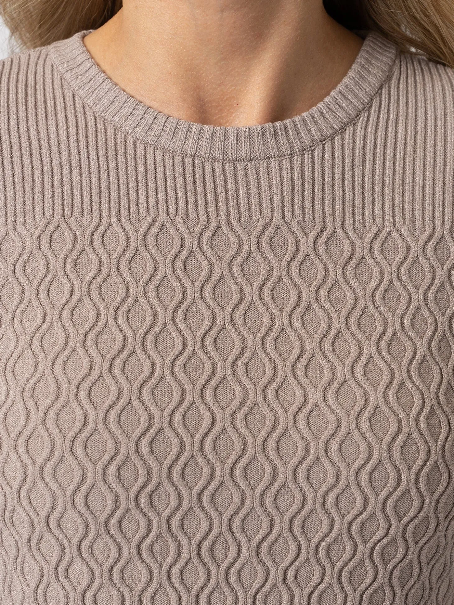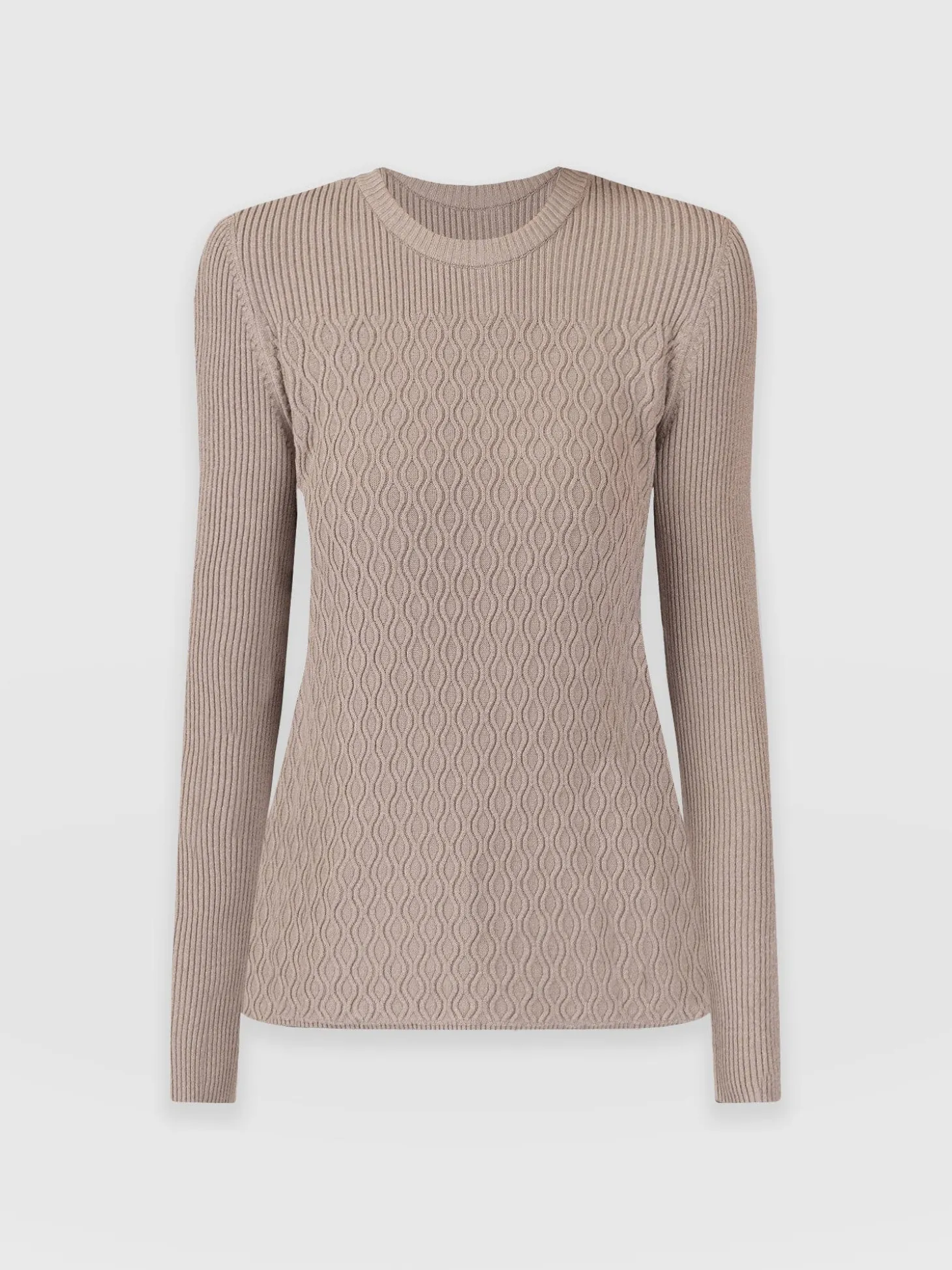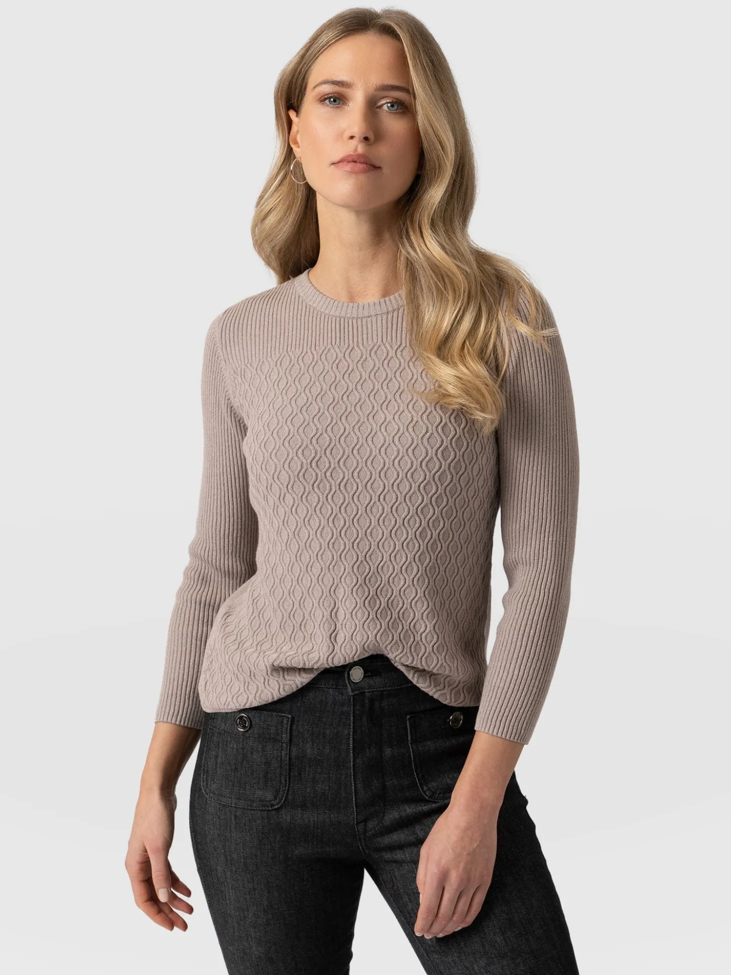 Handmade in our Studios in Europe, the Primrose Sweater in malt uses a comfortable honeycomb knit texture crafted from a soft Italian weave. At the top, it boasts a crew neckline that descends into bracelet length sleeves, and features contrasting ribbed detailing through the décolletage and down the arms. Pairs yours with the matching Primrose Pant if you like a co-ord for lounging. Or slip into your favourite jeans for more dressed up take on causalwear.