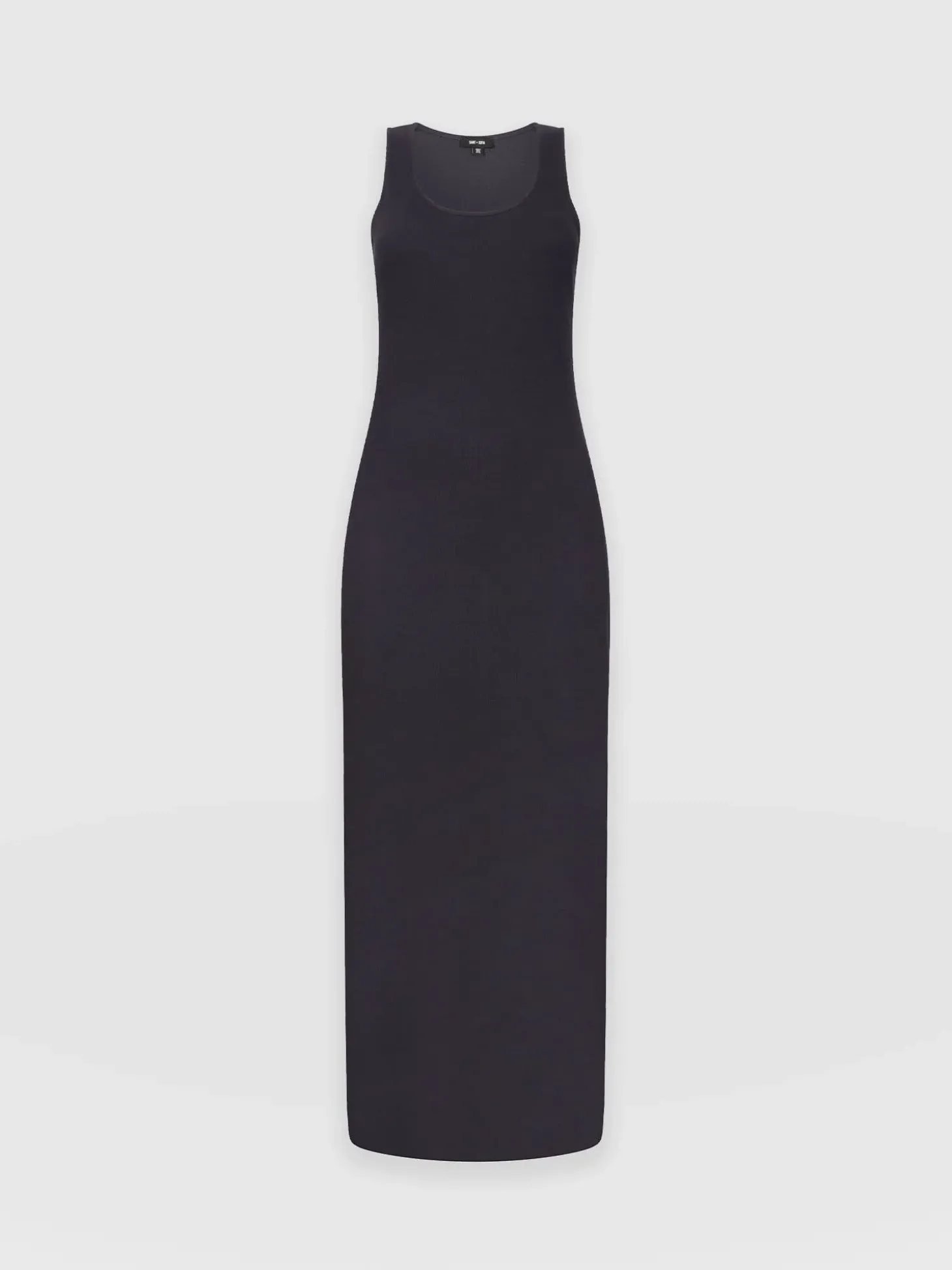 A comfortable cotton maxi dress in navy with a gentle rib finish. Designed for a comfortable, figure hugging fit (with a little stretch) and with racerback slits on both sides. Made with the softest, smoothest organic cotton. Each one is finished by hand in our studios in Europe to guarantee the perfect fit and feel that’s true to size. Pair with slides, sandals or sneakers in summer or barefoot when you’re on the beach.