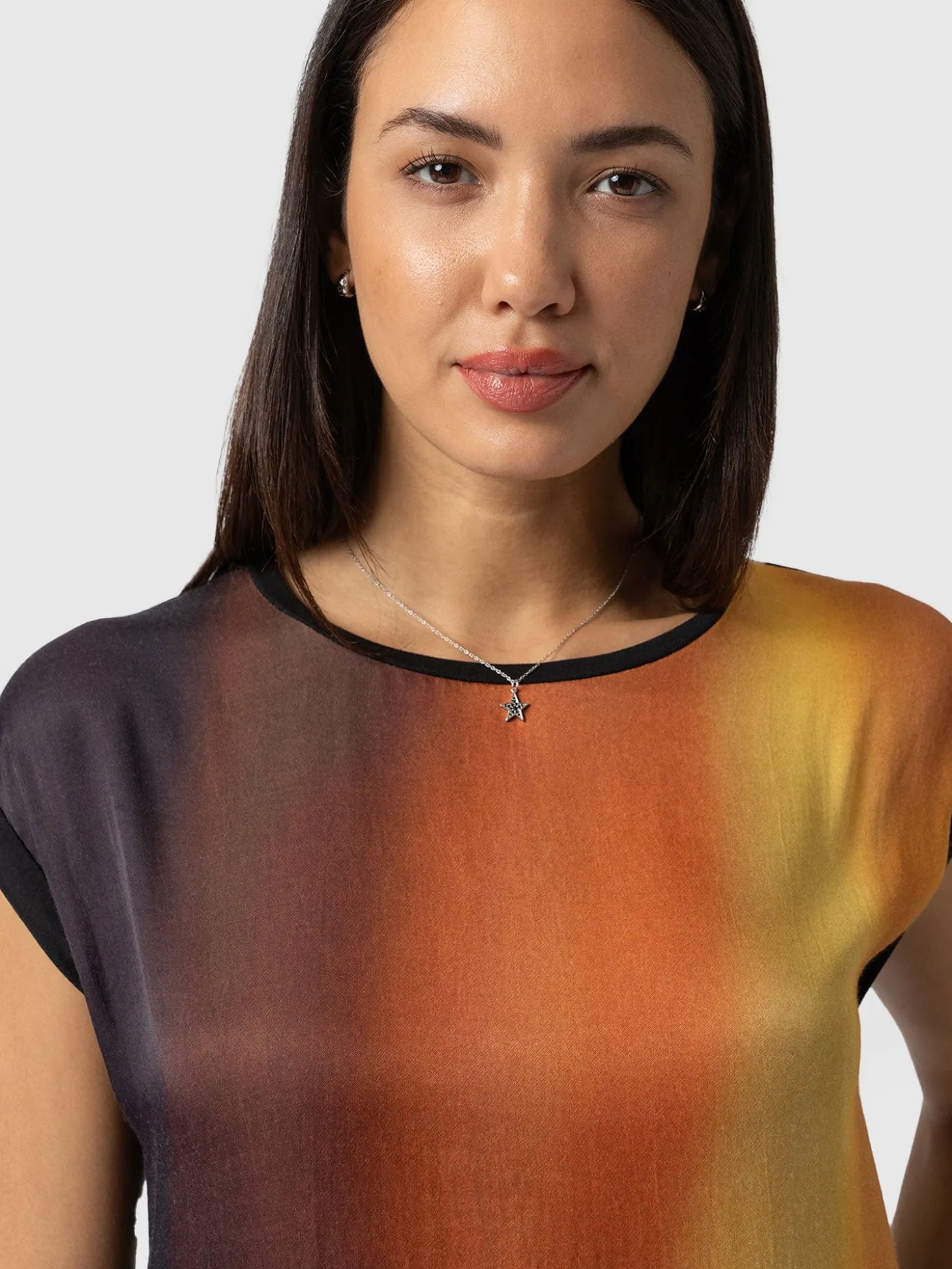 A classic crew-neck tee in our Amber Gradient print with rolled cap sleeves. The Turn Up Tee is cut to a relaxed, easy fit that’s perfect for throwing on with any outfit. Each one is handmade in Europe using the softest cotton blend fabric to ensure all-day comfort. Pair it with jeans or leggings and your favourite sneakers, or opt for skirts on warmer days.