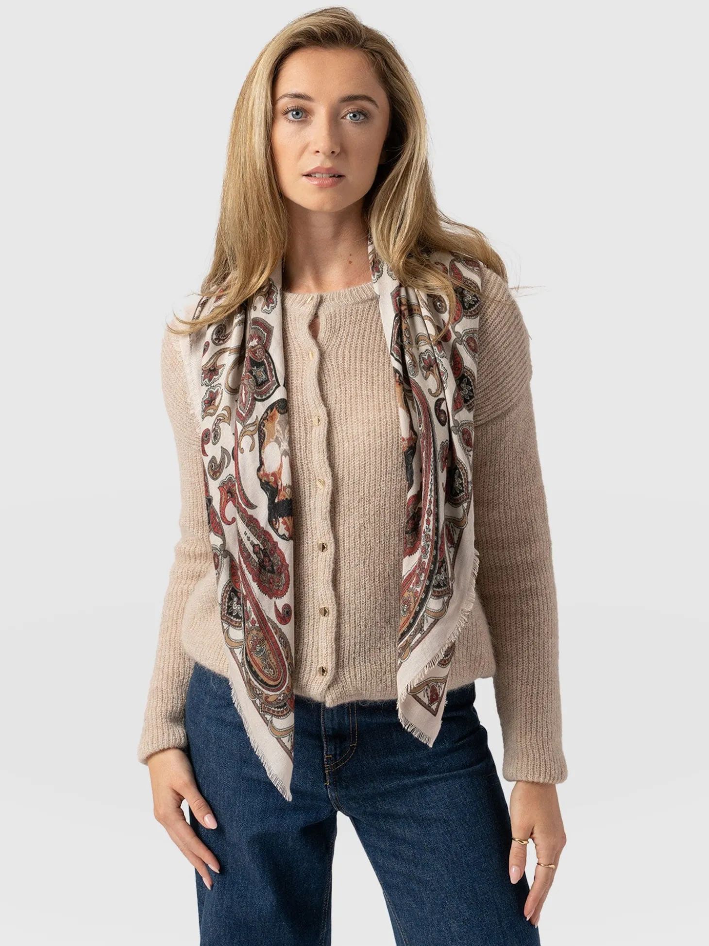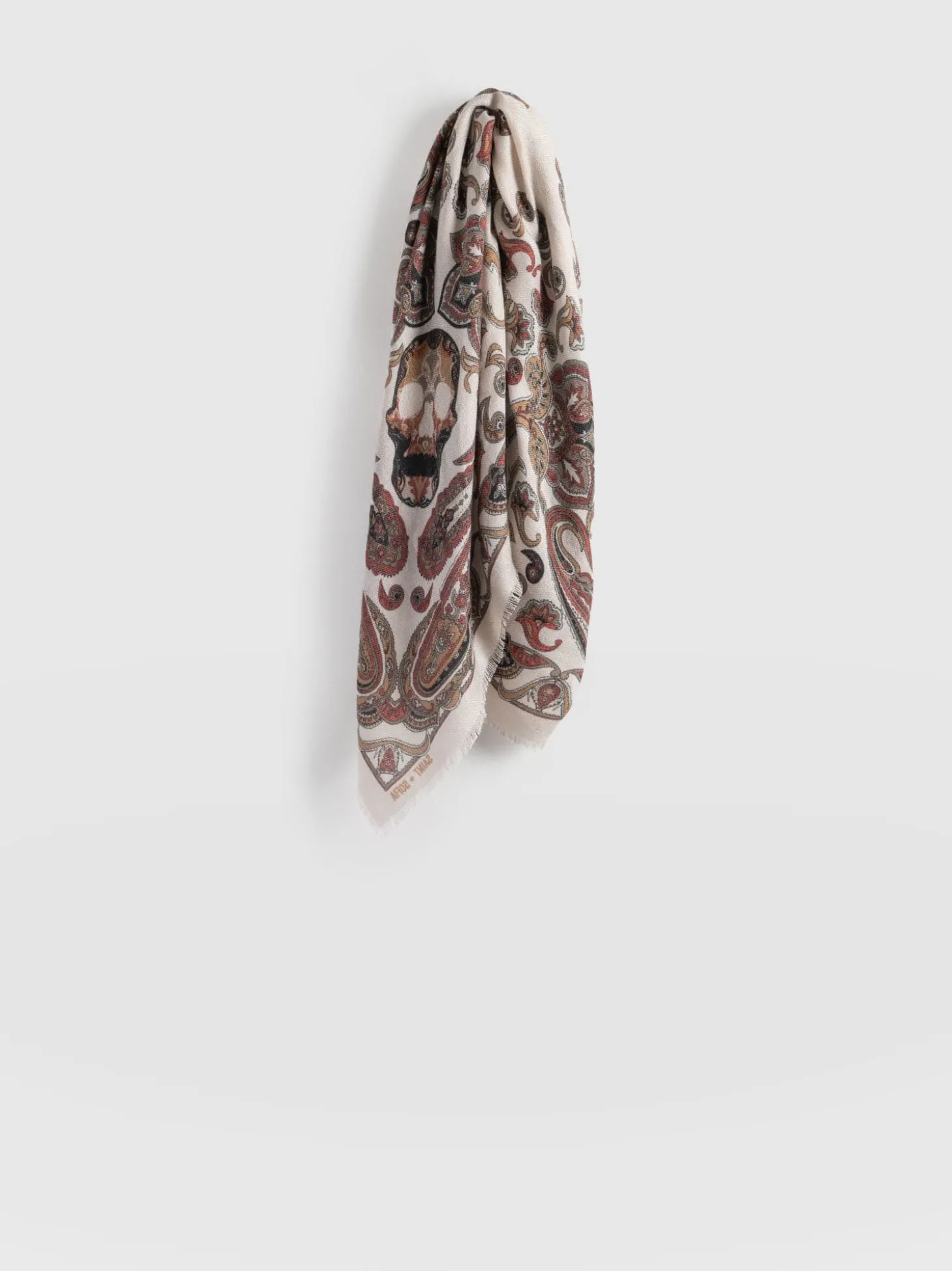 A beautiful scarf made with soft viscose and wool in a stunning paisley print. Each scarf is a generous 90cm x 90cm size and is handwoven in Italy.
